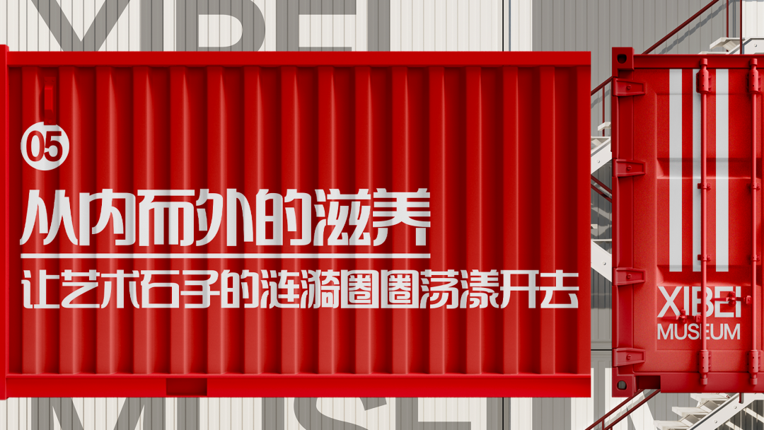 红色的巨大钢外立面上,巨型白色字体“XIBEI MUSEUM”标识强化了空间的公共属性。集装箱作为一种看似简单的工业产物,其哲学与美学意义已超越了实用功能,成为全球化时代的技术符号、文化隐喻与艺术载体。集装箱的核心哲学在于“以标准化承载最大可能性”。