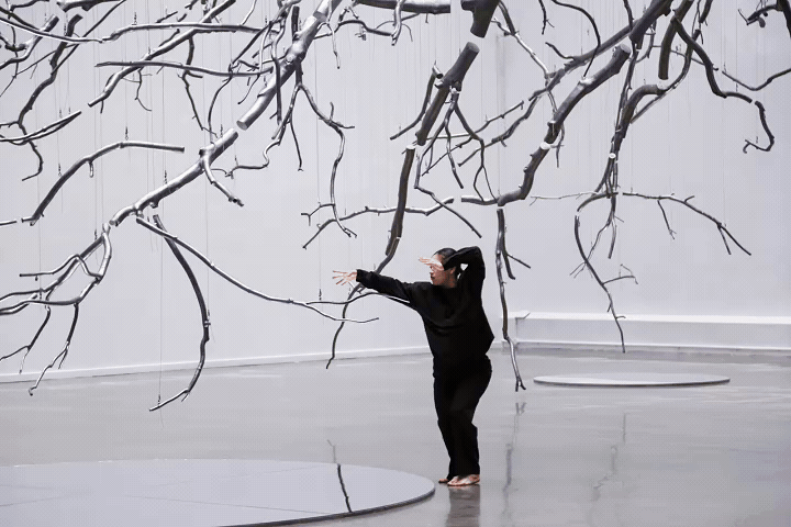 ▲ 孟柏伸,《悬置》,2017,树、铅笔、镜子,尺寸可变