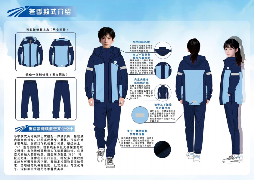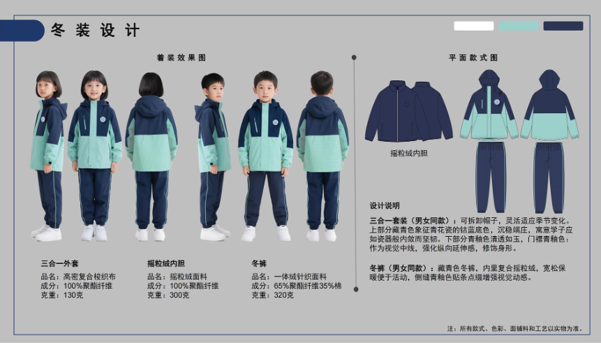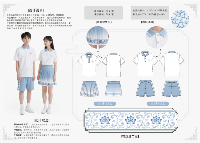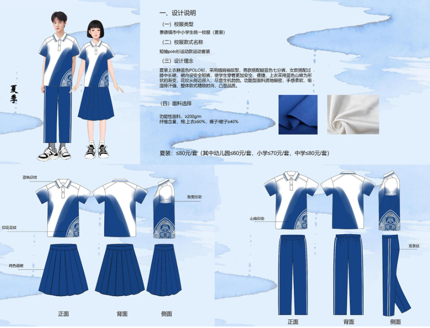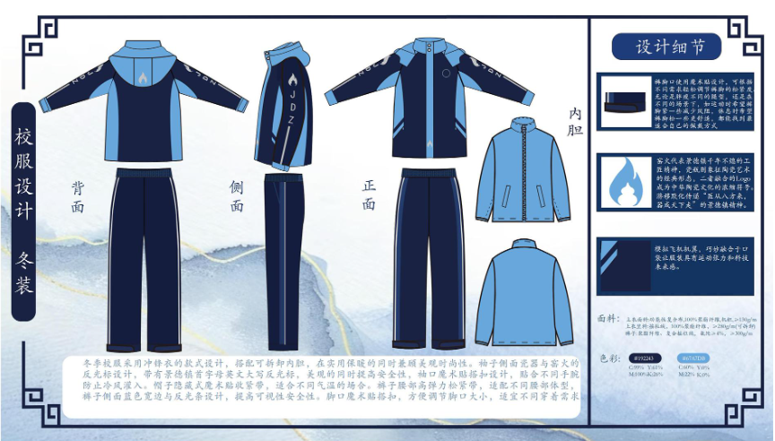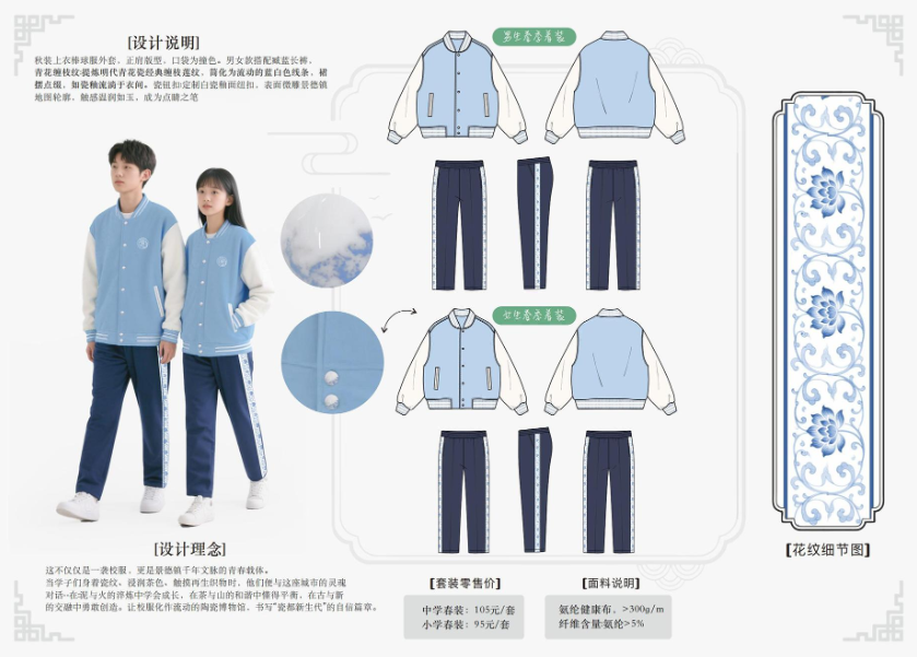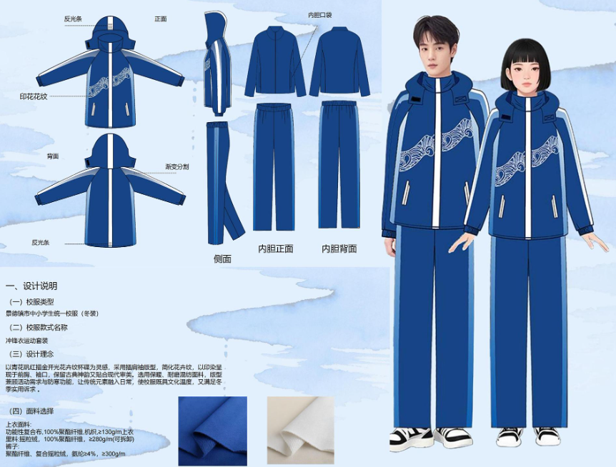 本次评选采取综合评分制,最终结果将由大众评审团评分(权重70%)与公众投票得分(权重30%)加权计算产生。经综合评定后得分最高的设计方案,将正式确定为景德镇市中小学生统一校服款式。