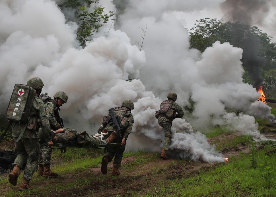 “前线”交战正酣,“伤员”不断增多,“收到上级来电,前方有‘伤员’滞留!”接到指挥组下达的最新命令,“准军医”们再次背上背囊,一个个身影迅速冲入硝烟,一起奔向前方的战场。(王俊康、李鑫、罗杨)