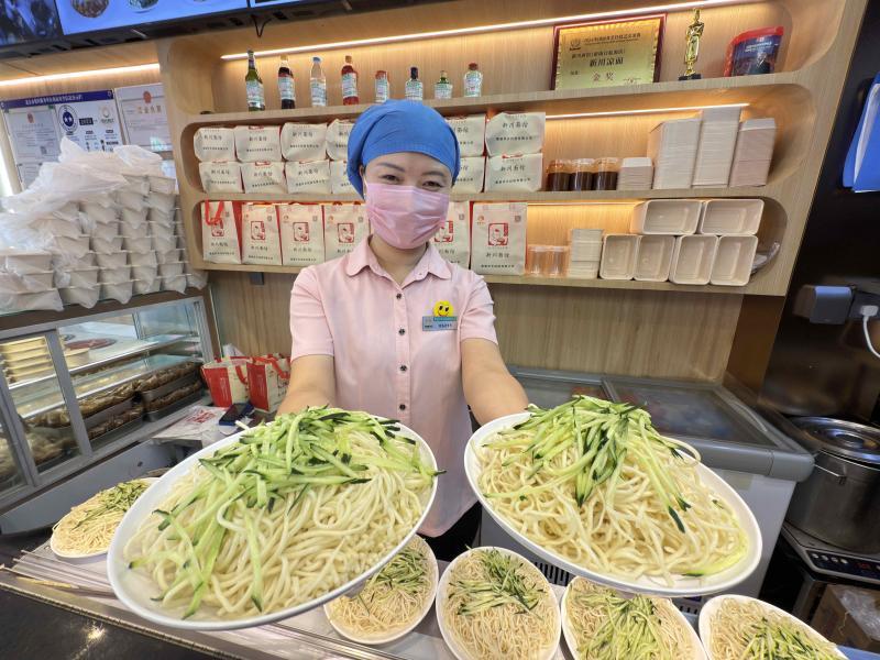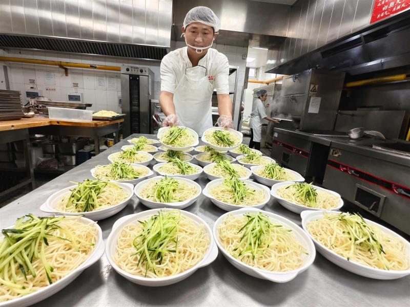 位于京城旅游景区的老字号面馆更是人气爆棚。在杏园刀削面馆白塔寺店,店内座无虚席,排队的食客络绎不绝。据杏园刀削面馆白塔寺店不完全统计,随着夏至临近,游客就餐数量增加了两三倍。为满足食客多样化需求,今年店里除了招牌的小炖肉刀削面、双浇刀削面,还特别推出爽口利夏的榨菜肉丝面,清爽的口感,为炎炎夏日带来一丝清凉,成为不少食客的新选择。