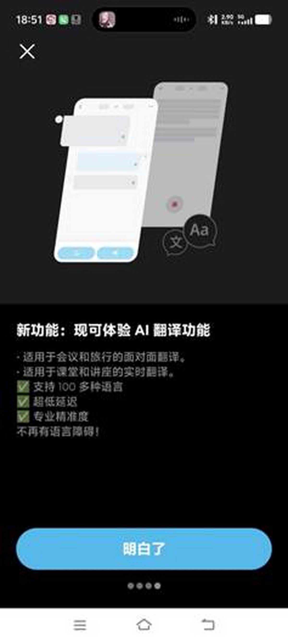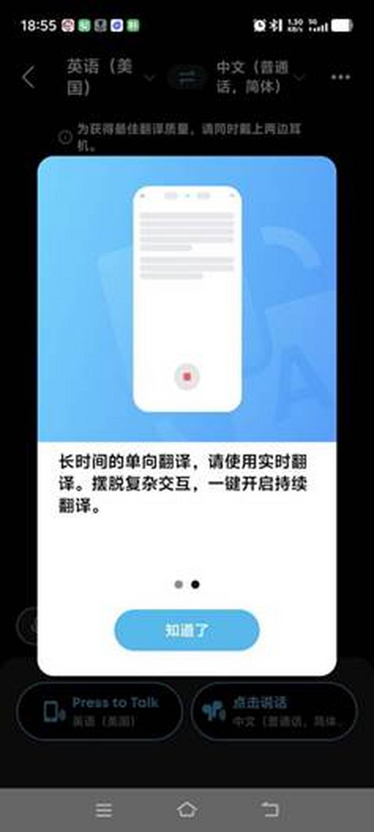 通过这个GIF,我们可以看到飞跃线 Air精准快速。另外翻译模式下开启实时翻译(接近同声传译)需要同时佩戴两个耳机,编辑将另外一个耳机分享给旁边一位美女媒体朋友。这位媒体朋友用着比笔记本讯X同传,所以正好对比一下。据她的反馈飞跃线 Air的翻译速度和精准度明显强于这个讯X同传软件,并表示讯X同传即使选了科技行业在专业术语上的翻译仍然不太准确,考虑到她的笔记本电脑是比较高端的型号,拾音应该没太大问题,所以Azure AI的表现真的很强大。