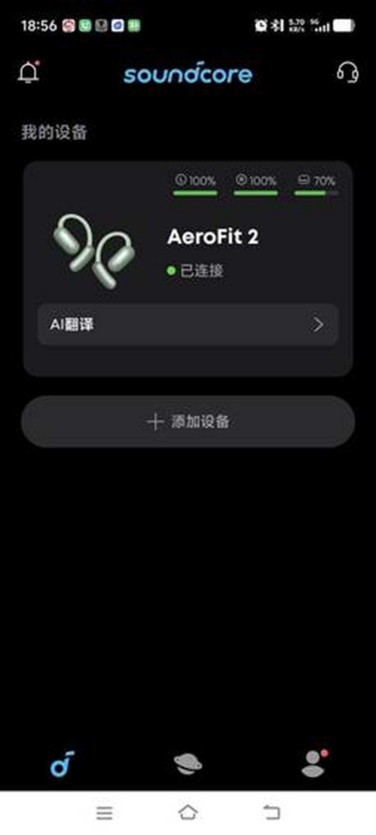 声阔的APP是需要注册才能使用的,注册登陆后通过提示就能简单连接到耳机。进入后界面首先就能看到AI翻译选项,也是这个耳机主打的功能。