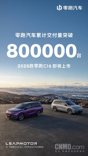 6月18日,零跑汽车正式宣布累计交付量突破80万台。这代表着零跑汽车坚守全域自研战略,打造好而不贵的产品的战略路线取得了成功。此外,零跑汽车还宣布2026款C16即将上市。