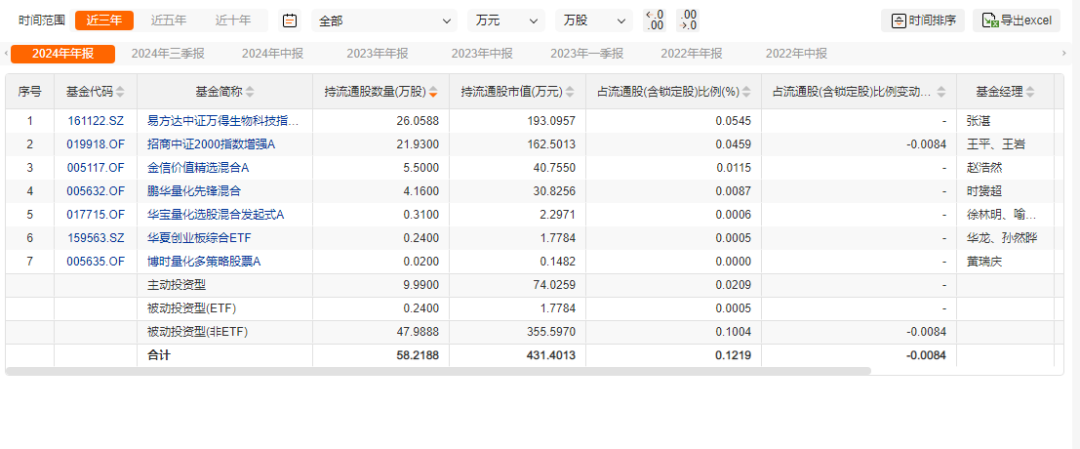 如果进一步翻看舒泰神基金重仓情况,竟然很少有专门创新药领域的基金。叠加ETF持仓,基金持有的舒泰神仅有58万股,合计持有流通市值不过才430万左右。毕竟舒泰神过去业绩太差了,没法入公募基金的眼。