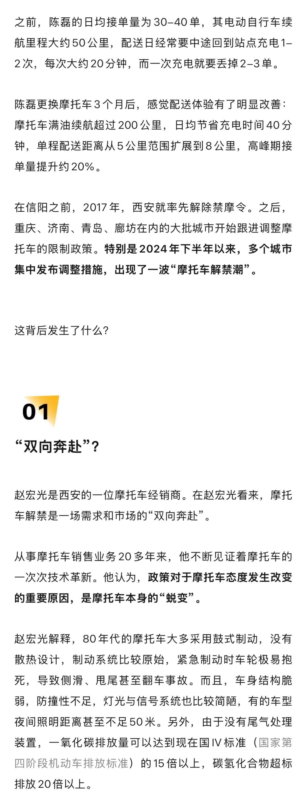 政策公布的第二天,陈磊就将骑了两年多的电动自行车换成了摩托车。
