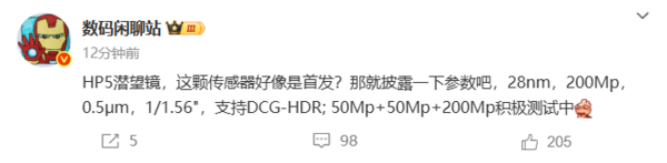 近日,有数码博主曝光了新款2亿像素潜望镜传感器HP5的详细参数,并暗示将会由OPPO首发。