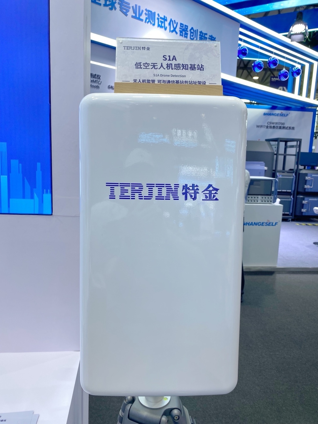 本次展会上展出的全球首款基站式TDOA低空感知设备S1A。