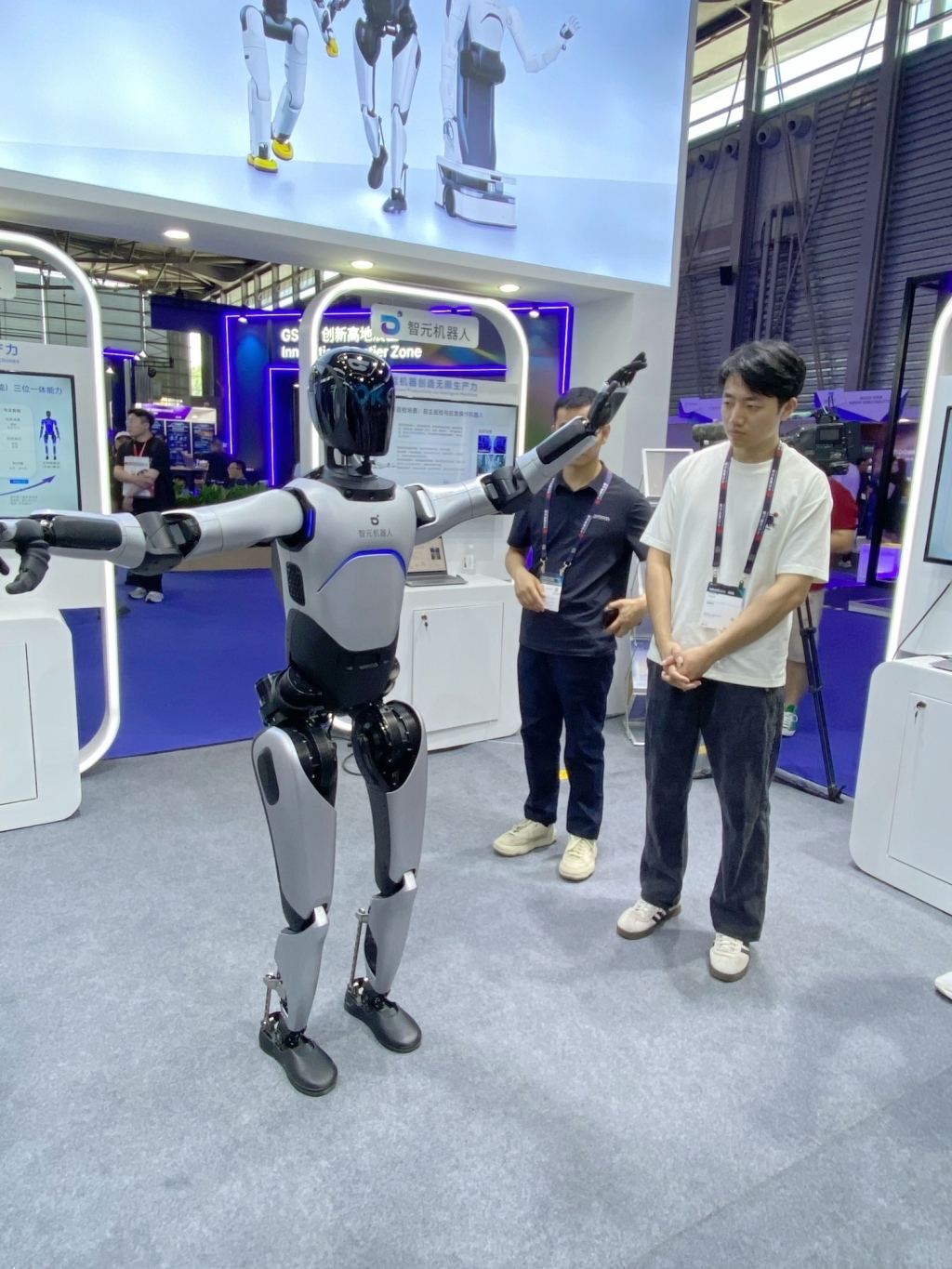 远征A2是智元机器人为交互服务打造的通用人形机器人,净身高169厘米,全身拥有超50个自由度,具备多轮语音对话能力。
