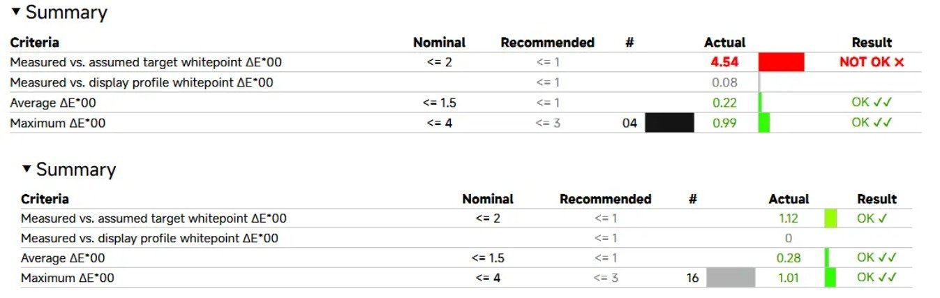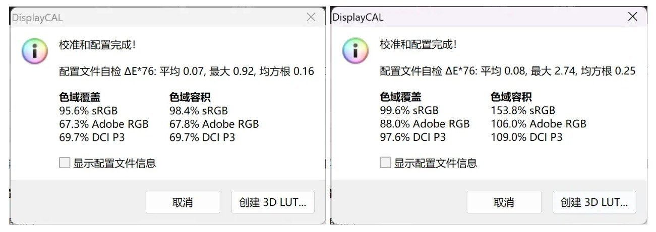 至于色彩方面,REDMI K Pad 依旧得到了多亮度原色屏校准,我们也对它的色彩表现进行了测量,其中在专业原色模式下它做了对应的色域缩限,覆盖了 95.6% 的 sRGB 色域,平均 ΔE 来到了 0.22,最大ΔE 仅为 0.99;在鲜艳模式下,它则是比较充分发挥了面板的色彩能力,做到了 97.6% 的 DCI-P3 色域覆盖,平均 ΔE 则是 0.28,最大 ΔE 仅为 1.01,色彩表现确实相当出色。