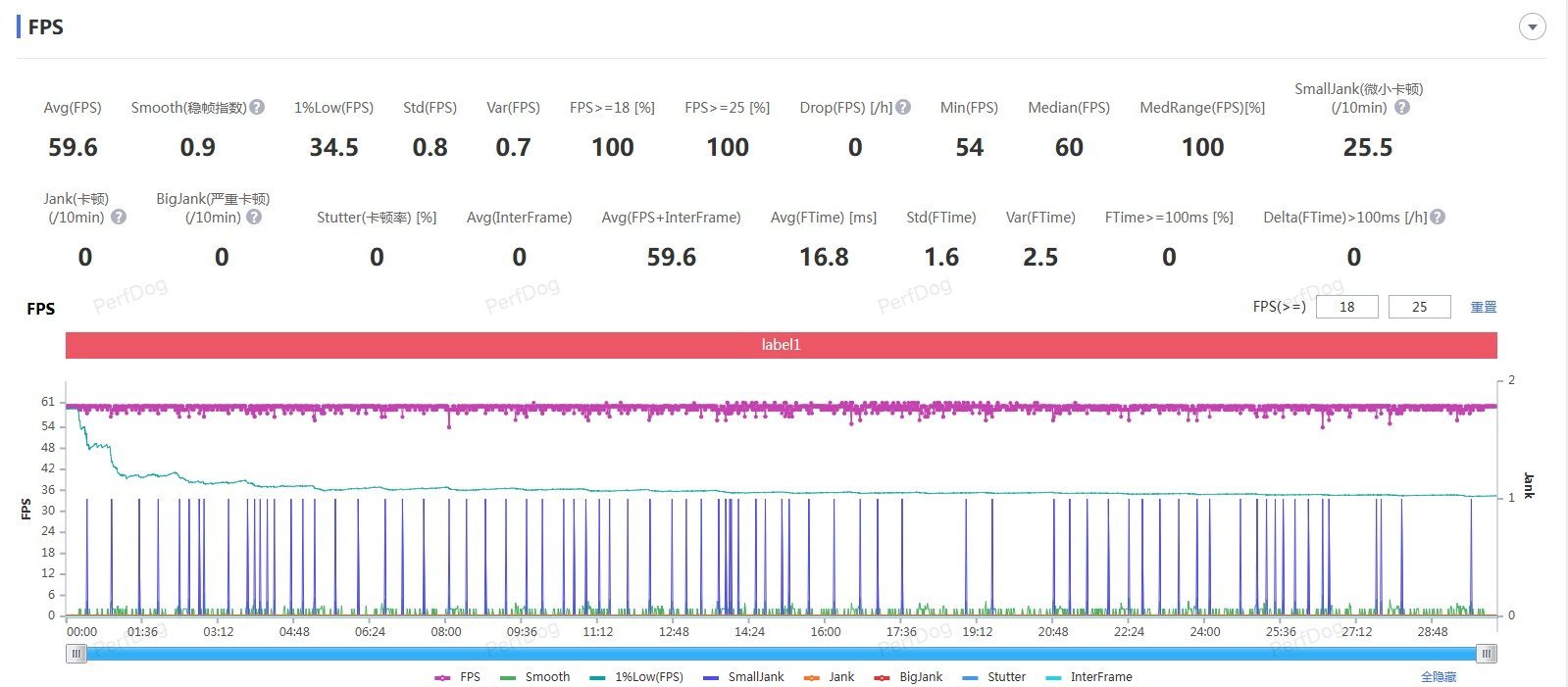 在负载更高的《崩坏:星穹铁道》黄金时刻场景中,REDMI K Pad 的表现依旧稳定而优秀,1080P 分辨率下半小时游戏平均帧率 59.6 帧,曲线波动只比在《原神》中稍多一些,整体依旧平稳得近乎直线。它在这个场景中的功耗也仅为 8.8W,优化效果相当不错。