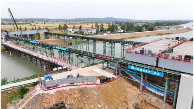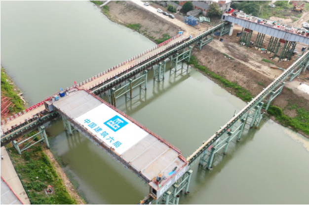 近日,中建六局八建公司S18合宁高速路基03标项目重达330吨的钢箱梁通过170米“空中漫步”,精准就位至预定接受墩,顺利完成标段内首个钢箱梁顶推目标。