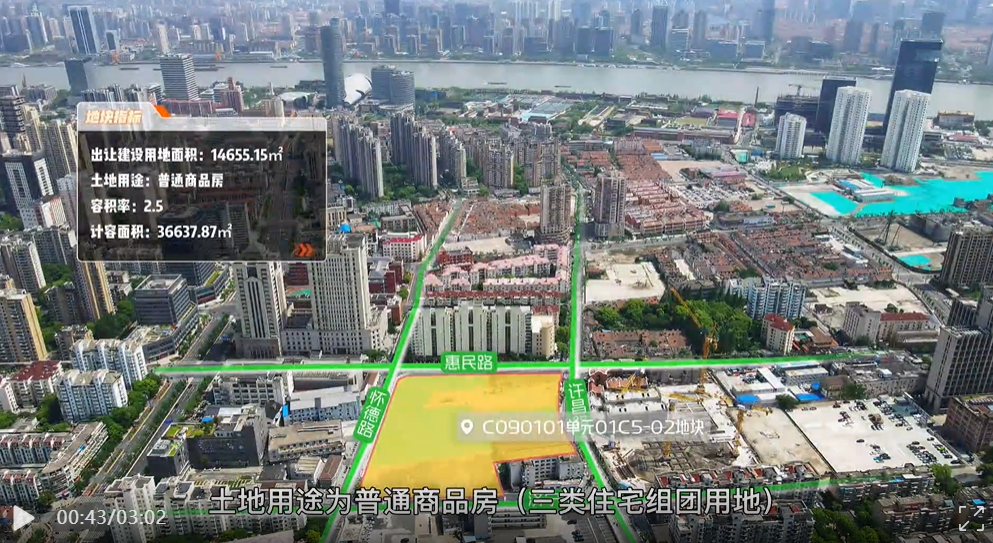 出让文件显示,该地块规划为普通商品房用地,地块位于东外滩板块,东至怀德路、南至惠民路、西至许昌路、北至济宁路,建设用地面积14655.15平方米,容积率2.5,地上计容建筑面积36637.87平方米,起始总价为26.7600亿元,中止价37.4640亿元。