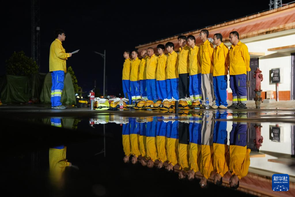 6月18日深夜,中国铁路昆明局集团有限公司普洱基础设施段作业人员在进行作业前的准备工作。