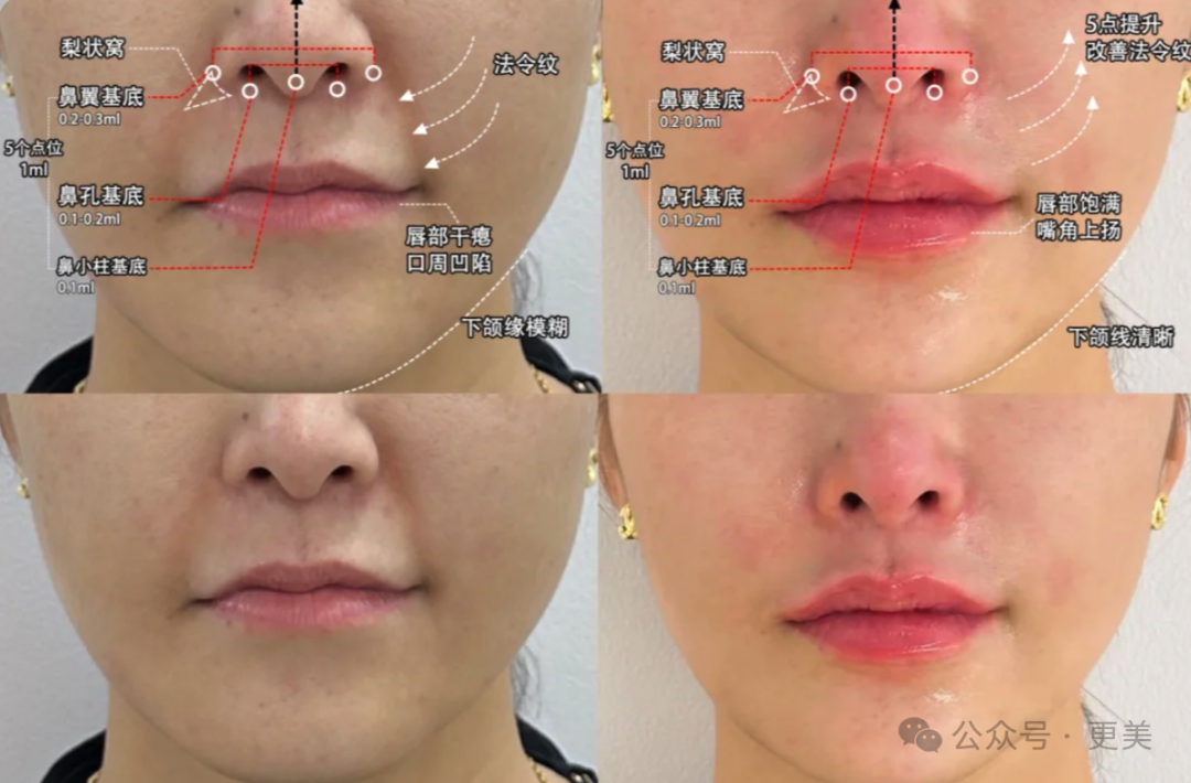 综上,简单几个点位的注射,就实现了切鼻翼、抬鼻头、隆鼻全方位的鼻综合效果。