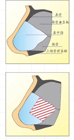 鼻中隔掌管整个鼻头的高度,抬高鼻中隔等于延长抬高整个鼻头,改善短鼻。