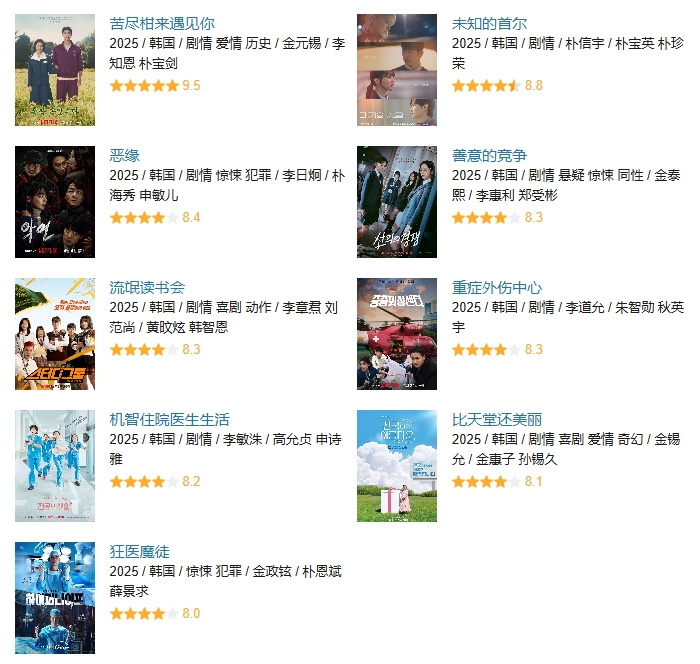 9.5分“剧王”《苦尽柑来遇见你》、近期口碑飙升的《未知的首尔》,在这份高分榜单中尤其亮眼。