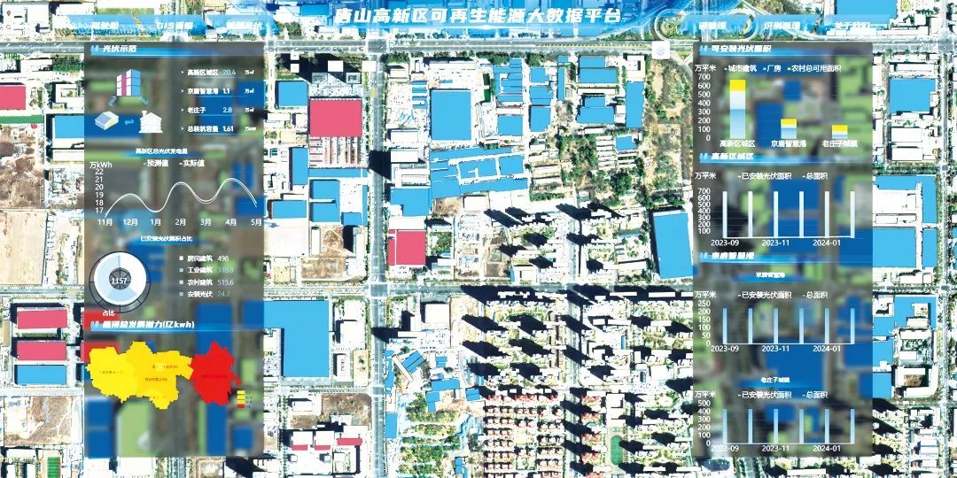 据了解,唐山高新区拥有丰富的屋顶资源,为分布式光伏应用提供了空间。但如何精准、高效地获取屋顶的实际可用面积,是目前需要解决的关键问题。在此背景下,郭放带领团队成员,通过AI等先进技术,开发出唐山高新区可再生能源大数据平台一期。