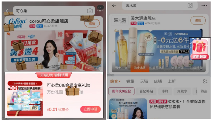 这次618恰逢“疯狂试用日”周年庆,丰富的流量场、站内外种草、直播专场等共同促成了商家派样的短平快爆发。据透露,由超过100个品牌共同参与的514活动,单场就创造了400多万订单,全网曝光量超过4亿,为品牌带来的拉新率超过90%。