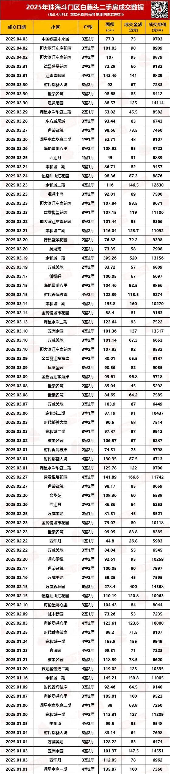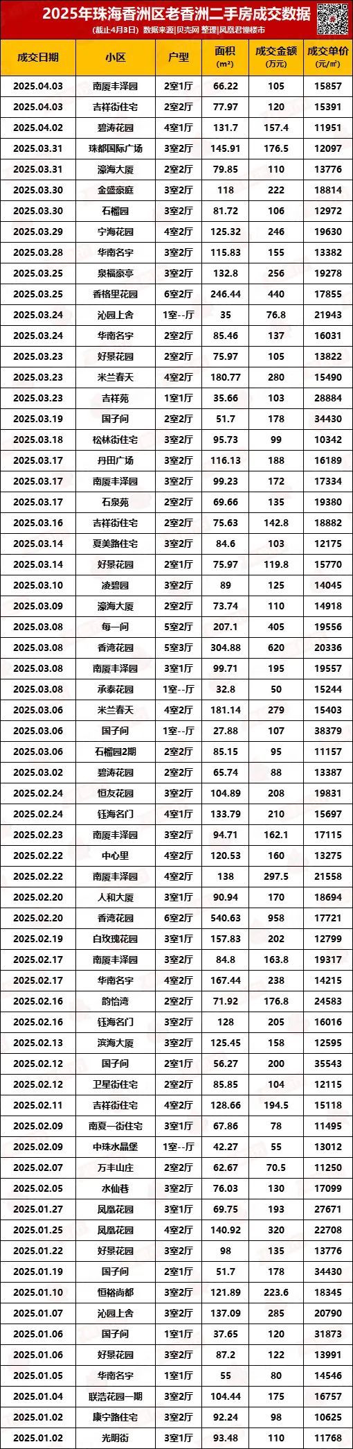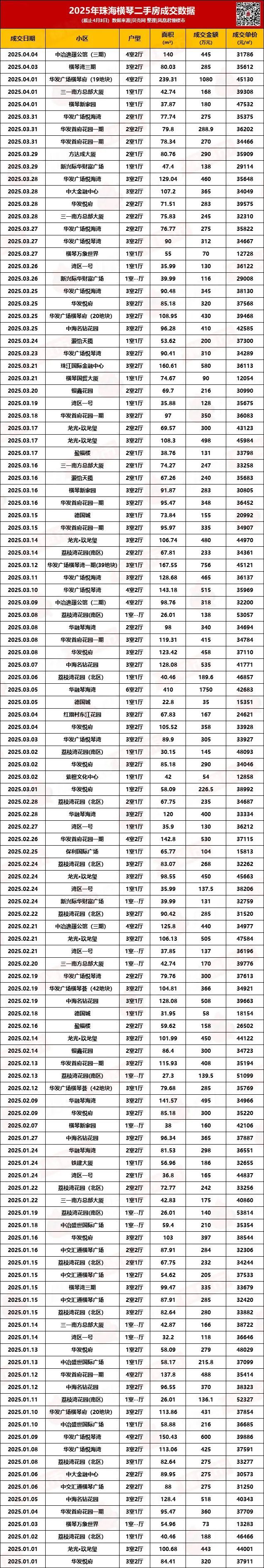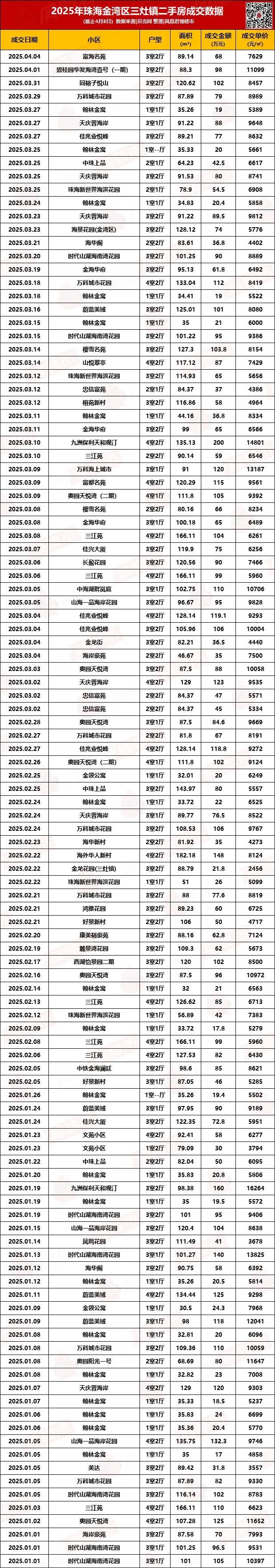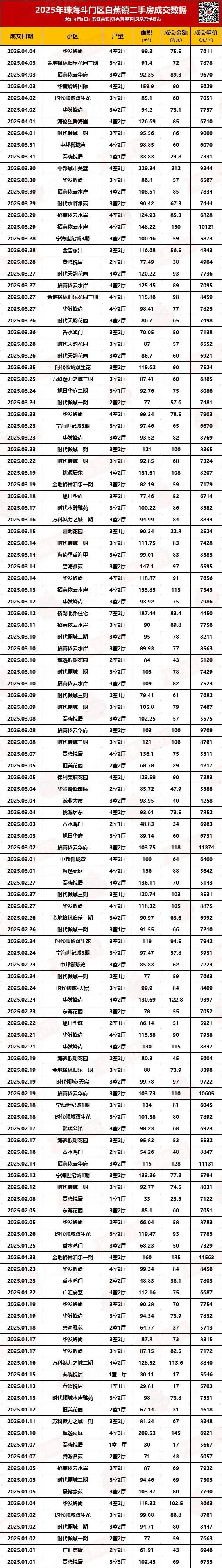 吐血整理!2025年,珠海最新二手房成交明细,建议收藏!