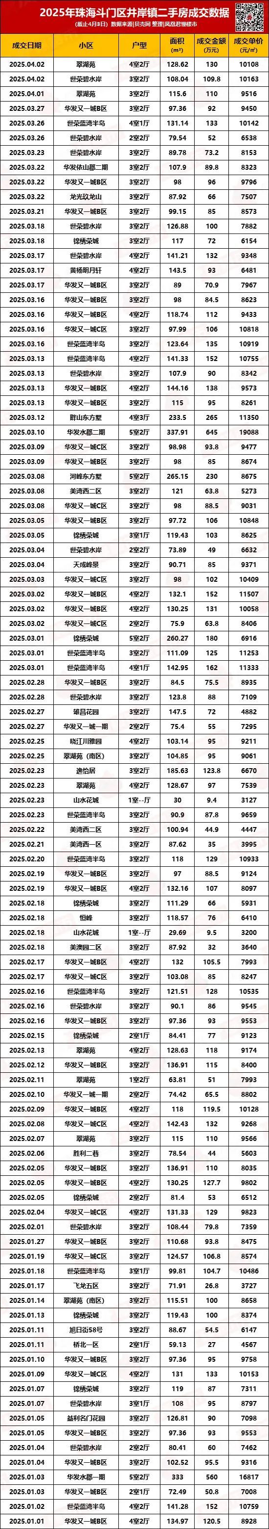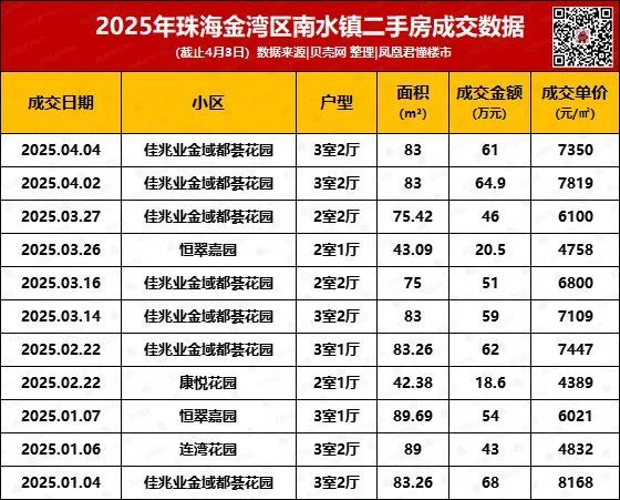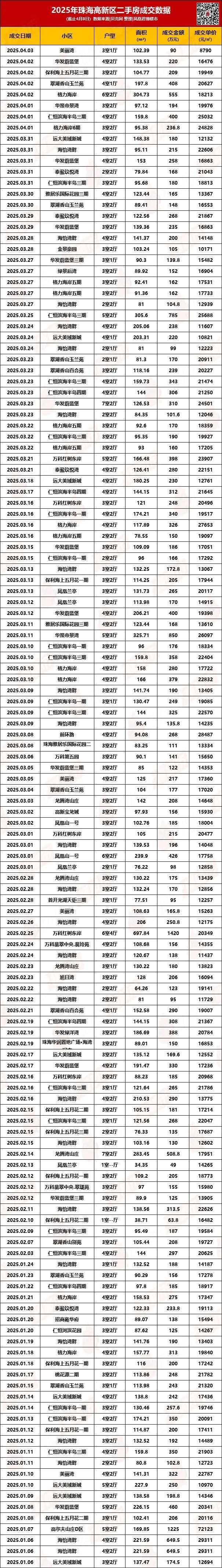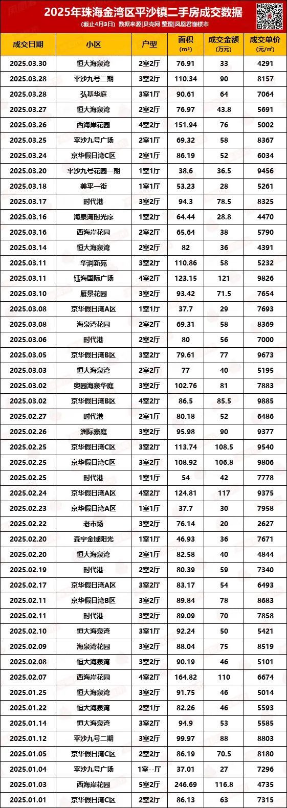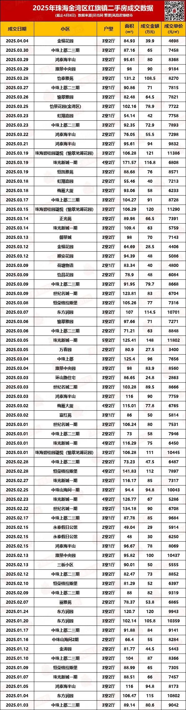 吐血整理!2025年,珠海最新二手房成交明细,建议收藏!