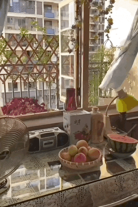 小学暑假的某一天早晨,阳光撒在阳台上,把妈妈种的盆栽和晒的枕头照得亮闪闪。
