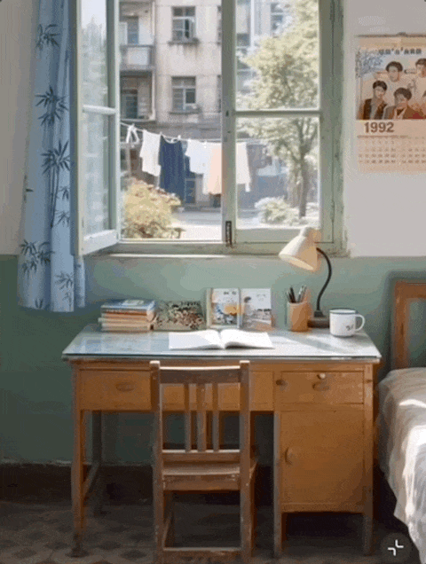 现在,脑海里时不时还会冒出一副画面:独自坐在窗边的书桌旁,手托着脑袋,歪着头看着窗外夏日午后的阳光透过树叶洒进来的斑驳,听着知了的叫声,小伙伴在窗外喊我的名字……