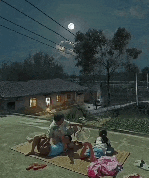看着满天繁星,听奶奶讲都是什么星……小时候的晚上,月光星光,就是很亮很亮。