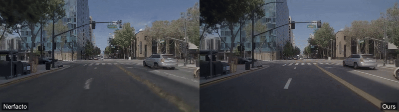 近年来,NeRF(神经辐射场)和 3D Gaussian Splatting(3DGS)等技术在三维重建与新视角合成中取得突破。然而,在训练相机视角之外,这些方法往往会出现模糊、鬼影、几何错乱等伪影,尤其在视角跨度较大、数据稀疏、光照变化或相机标定不准确的情况下尤为严重。这些伪影极大限制了其在自动驾驶、机器人、AR/VR 等真实场景中的应用。