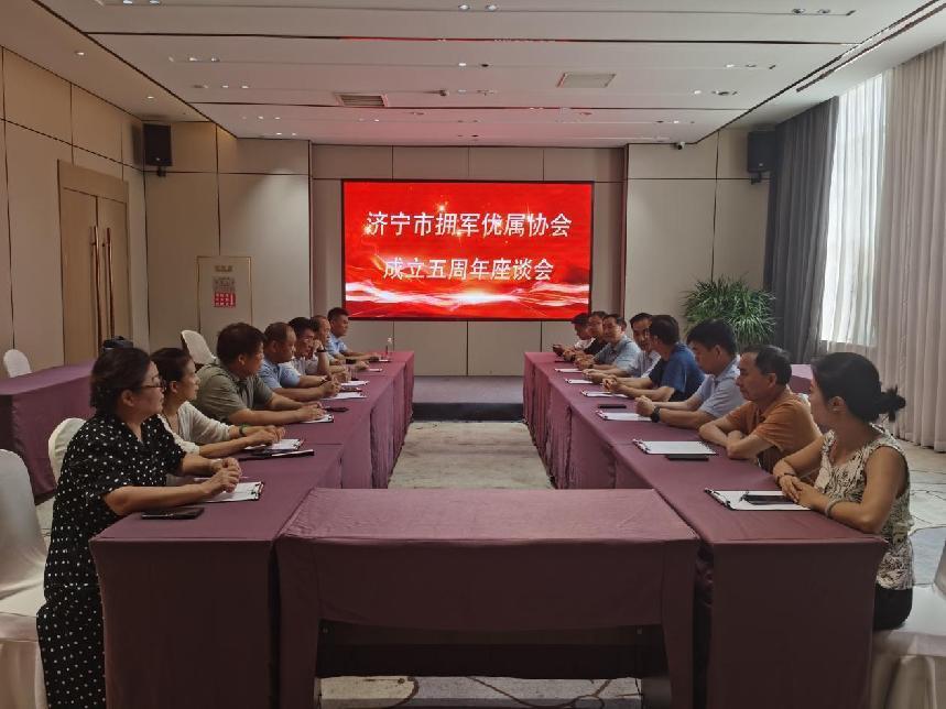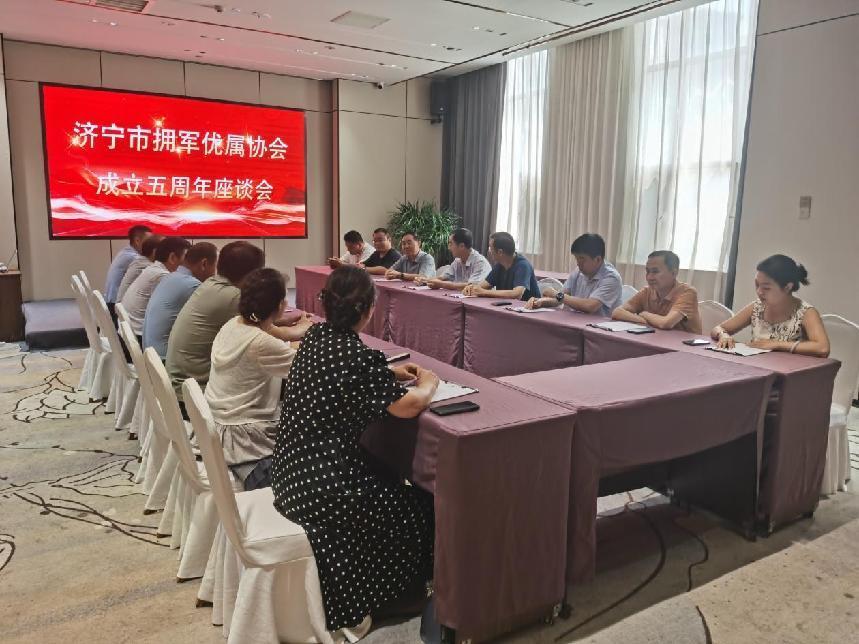 6月22日上午,济宁市拥军优属协会成立5周年座谈会在济宁君临龙城大酒店举行。济宁市退役军人事务局原局长、二级巡视员孔伟;济宁市退役军人事务局原副局长、一级调研员、济宁市拥军优属协会会长于彦柱及协会副会长、秘书长、理事等参加座谈。