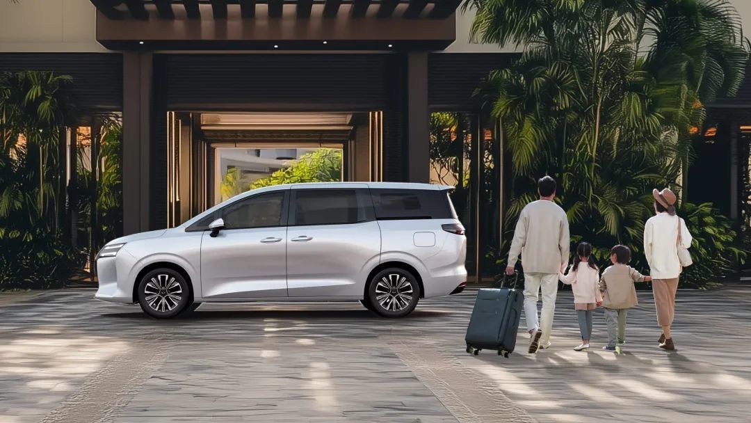 车身侧面,新车整体轮廓方方正正,采用平直的线条进行勾勒,车顶呈现悬浮效果,D柱采用隐藏式的设计,车窗线条平直,滑道位置设计在C柱和D柱之间侧窗下侧,搭配常规造型的车门把手以及侧滑门的开启方式,看起来非常稳重大气。尺寸方面,新车长宽高分别为4910/1850/1770mm,轴距为2910mm,采用7座布局。车尾部分,新车造型比较简约,尾灯造型与前脸形成呼应,尾门设计和牌照框区域较大,底部则采用黑色底护板设计。