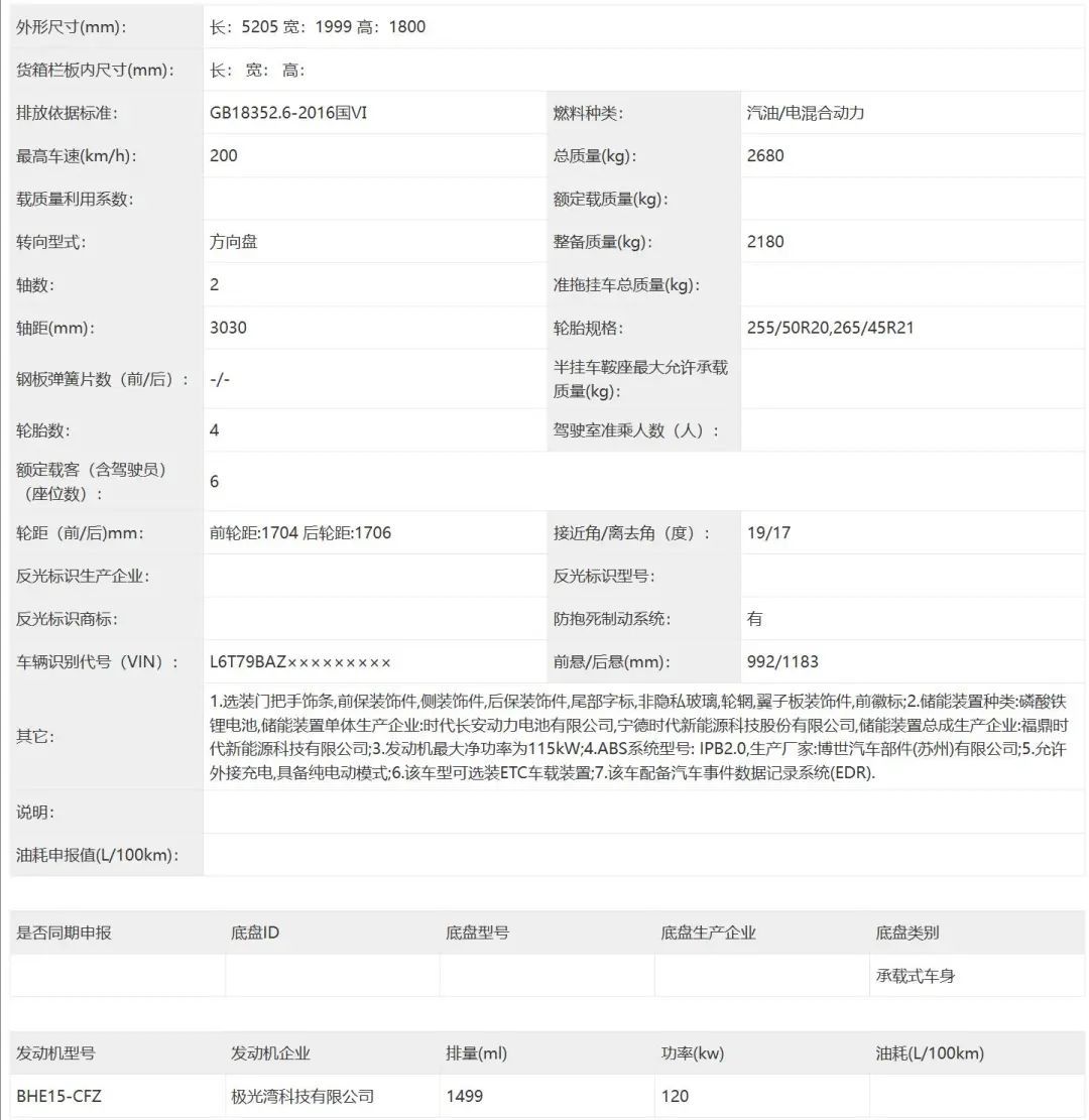 动力方面,新车搭载了1.5T插混系统,发动机最大功率120kW,电动机的参数并没有公布,搭配的应该是3挡DHT变速箱,此前官方曾透露综合续航超过1500km,亏电综合油耗为4.8L/100km。