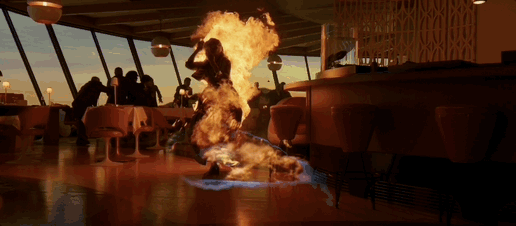 硬币卡在排风扇后,因为巨大压力蹦飞,精准划破了燃气管道,燃气涌向舞池。