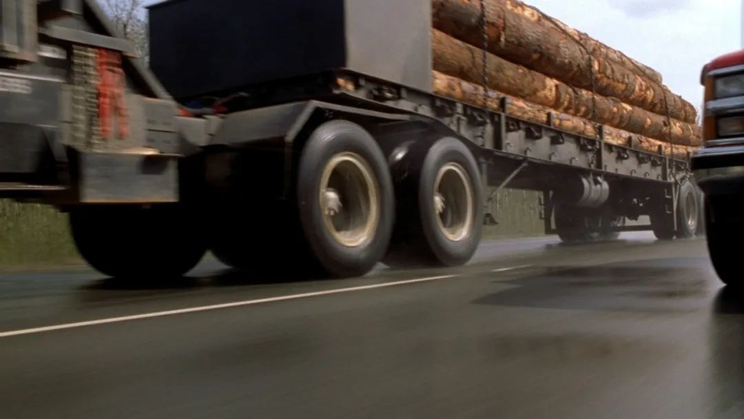 最终两人被火车上飞驰的圆木碾成肉泥。