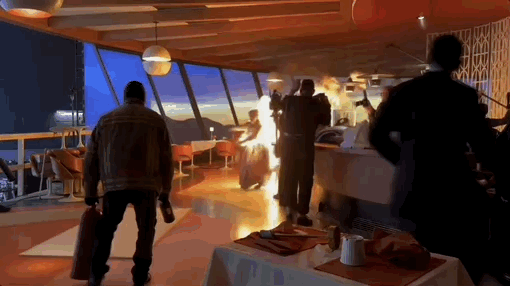值得一提的是,这位被点燃的顾客由已经退休的特技演员伊维特·弗格森(Yvette Ferguson)饰演。