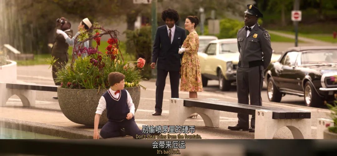 并且注意到在喷泉里偷硬币的小男孩,已经察觉到不对劲。