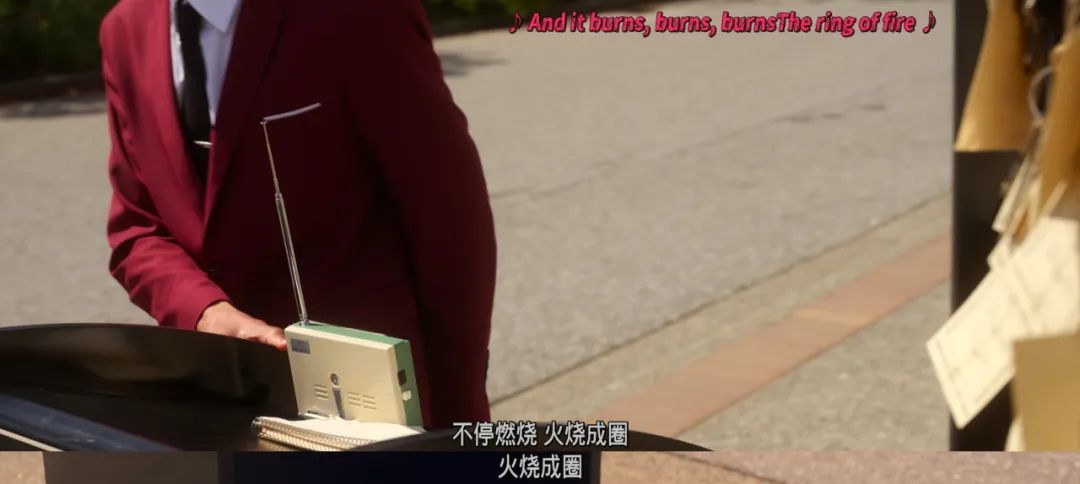 天景的接待当时听的歌曲,是乡村歌手约翰·卡什1968年创作的名曲《火环》(Ring of Fire)。