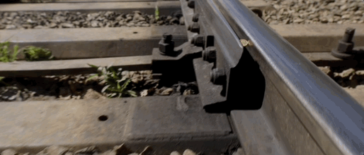 那枚硬币再次滚落,正好卡在铁轨中间。