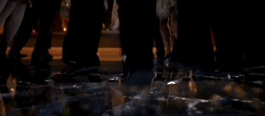 香槟酒盖击中吊灯,头部尖锐的水晶装饰掉落,将天景舞池地板刺出裂痕。