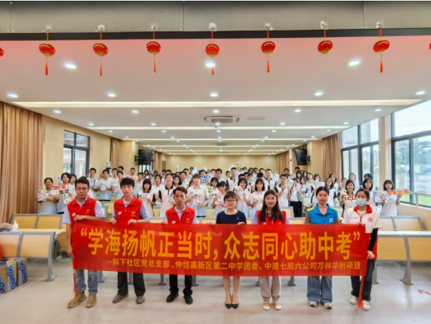 为弘扬志愿服务精神,助力中考学子圆梦,6月23日,中建七局六公司万林华府项目联合惠环街道斜下社区党支部及仲恺高新区第二中学团委,开展“爱心送考路,社企温暖行”助力中考活动,为考生们加油鼓劲。