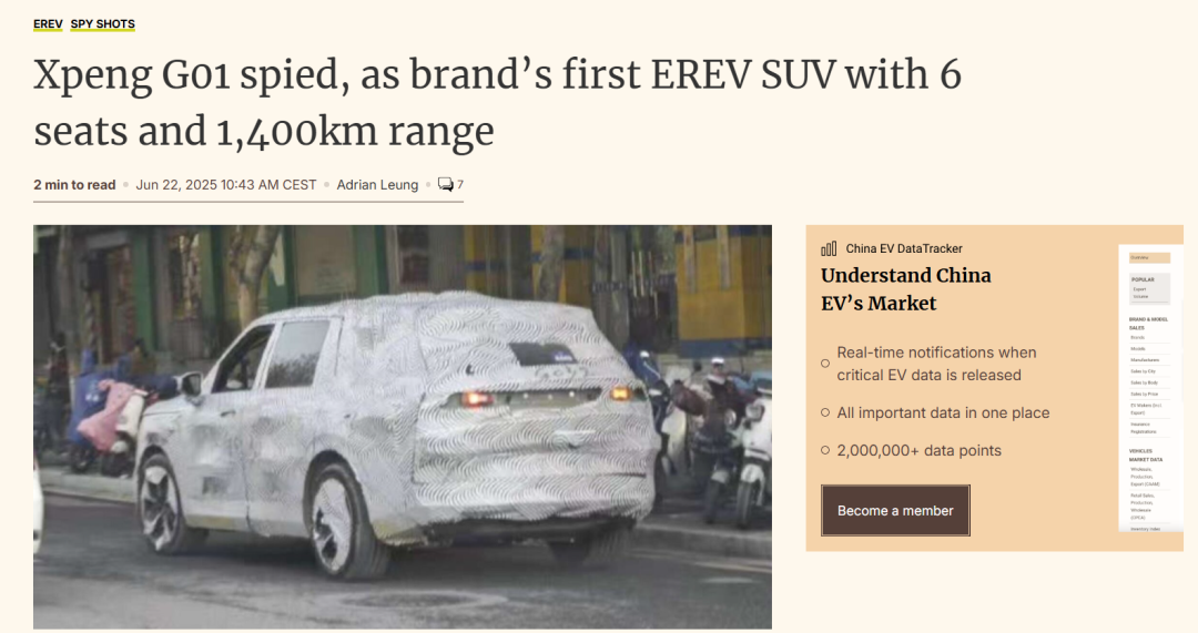 近日,外媒 CarNewsChina报道小鹏将以「G01」进军增程式车型市场,而新车型的谍照也迎来了曝光。
