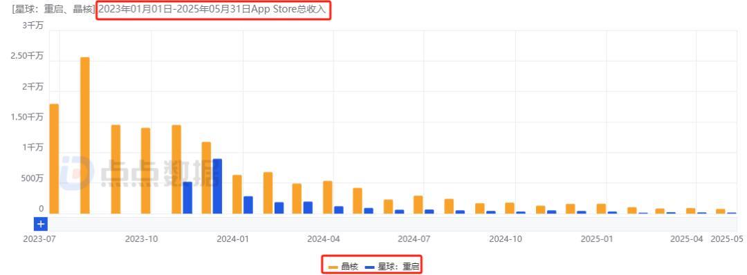 《晶核》与《星球:重启》国服iOS月流水趋势