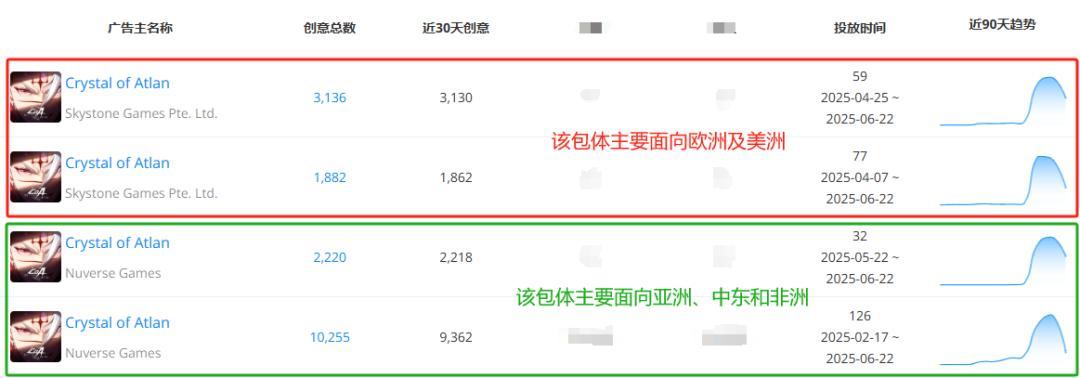 5月28日,海外服《Crystal of Atlan》正式上线140多个国家及地区,涉及手机、PS5以及PC等多平台,首日便冲上了80个区域市场iOS游戏免费榜TOP50(45个区域市场TOP20,其中登顶新马泰,位于日本第2、中国台湾第2、美国第11、韩国第14),期间又陆续登上22个区域市场iOS游戏畅销榜TOP50。截至目前,其还位于11个区域市场游戏免费榜TOP50,6个区域市场游戏畅销榜TOP20,整体分布在东南亚。