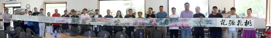 九十四岁高龄的艺术家朱曜奎教授研究与弘扬中华传统文化一辈子,曾经与吴冠中、袁运甫等先生共同恢复“中央工艺美院特艺系”,发展“大美术”与民俗漆画艺术,得知成立北京民俗旅游协会民俗文化研究院非常高兴,表示这是自己多年的心愿,欣然答应担任研究院名誉院长,并向研究院赠送长幅画作“桃花源记”及书法作品表示祝贺。