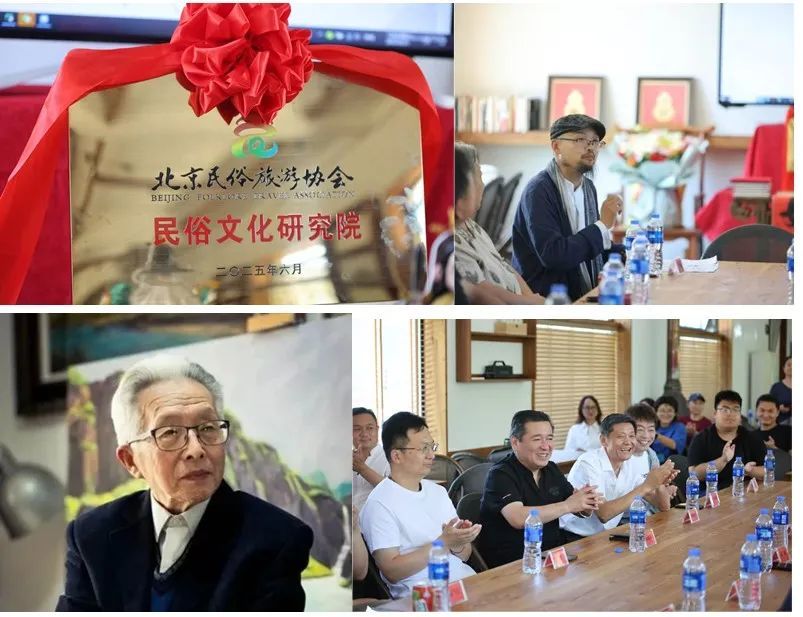协会魏广川会长、田广营副会长现场举行“北京民俗旅游协会民俗文化研究院”授牌仪式。然后由刘晓军院长介绍了研究院成立的意义及发展方向,会上宣读关于北京民俗旅游协会同意成立民俗文化研究院的批复。来自清华大学美术学院、九十四岁高龄的“国宝级”艺术家朱曜奎教授担任名誉院长,中央民族大学谢路军教授、中国社会主义学院李道湘教授等担任专家顾问,来自清华大学美术学院的非遗传人张英、许丽、赵文岳等担任学术委员。在协会魏广川会长的肯定下,由北京紫霄山院刘晓军担任执行院长,清华大学美术学院马爱民、国学与农业技术专家宫丽梅为副院长,带领办公室成员吴广真、姜锋、邹越等全面负责民俗文化研究院以后的工作安排及发展。