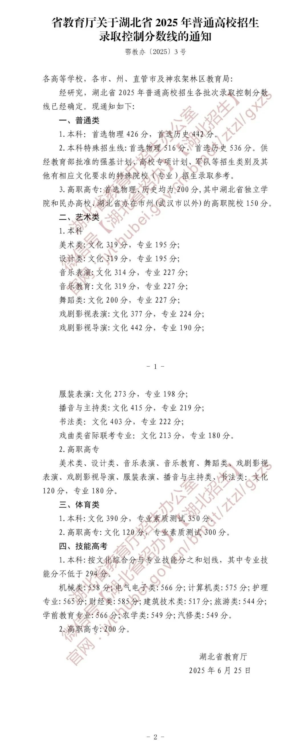 刚刚,2025年湖北省高考分数线发布↓↓↓