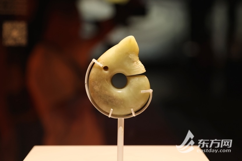 故宫博物院藏的红山文化“C”型玉龙和辽宁省文物考古研究院藏的红山文化玦形玉龙这次“出差”来到上博,堪称是本次展览的“镇馆之宝”。展览通过“龙出辽河”“龙行红山”“龙衍九州”三个单元阐释红山文化信仰统一、礼制初成的古国面貌,探究其如何走出一条独具特色的文明发展之路,实证中华民族五千多年的文明史,回答“何以中国”的历史之问。