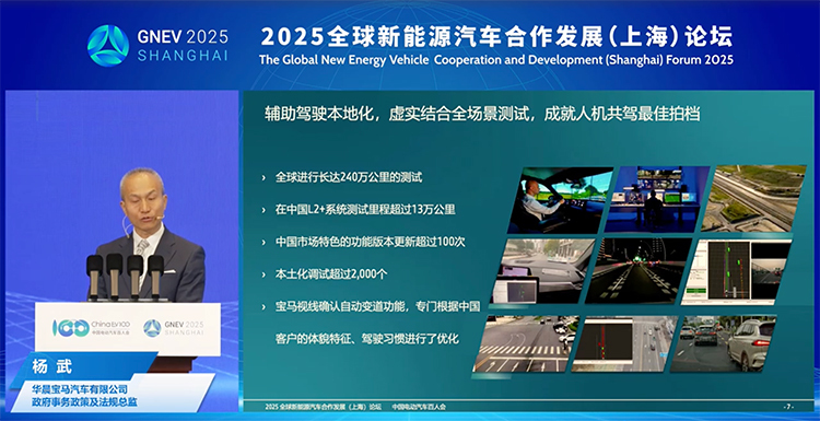 在2025年全球新能源汽车合作发展(上海)论坛的第二天下午演讲环节中,华晨宝马汽车政府事务政策及法规总监杨武出席并发表演讲。在演讲时他提醒各大出海的同行们,如果按照中国司机频繁换道超车的驾驶习惯来设计欧洲的自动驾驶,很可能会造成当地交通混乱。