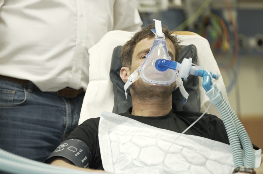 登山队成员正在吸入氙气/氧气混合物 图片来源:Furtenbach Adventures公司