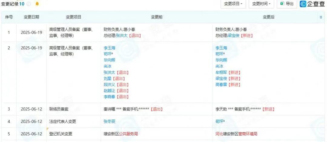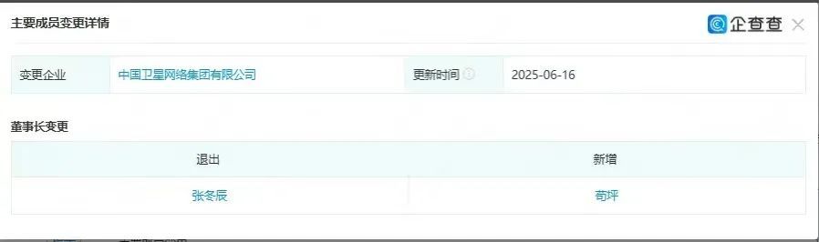 C114讯 6月26日消息 企查查、天眼查显示,6月24日,中国卫星网络集团有限公司(以下简称“中国星网集团”)新增高级管理人员备案(董事、监事、经理等)变更事项。其中,总经理由张洪太变更为梁宝俊,同时包括张洪太在内,刘星、段洪义、赵越让、李晓春五位董事退出,新增梁宝俊、牟相军、高春雷三位董事。